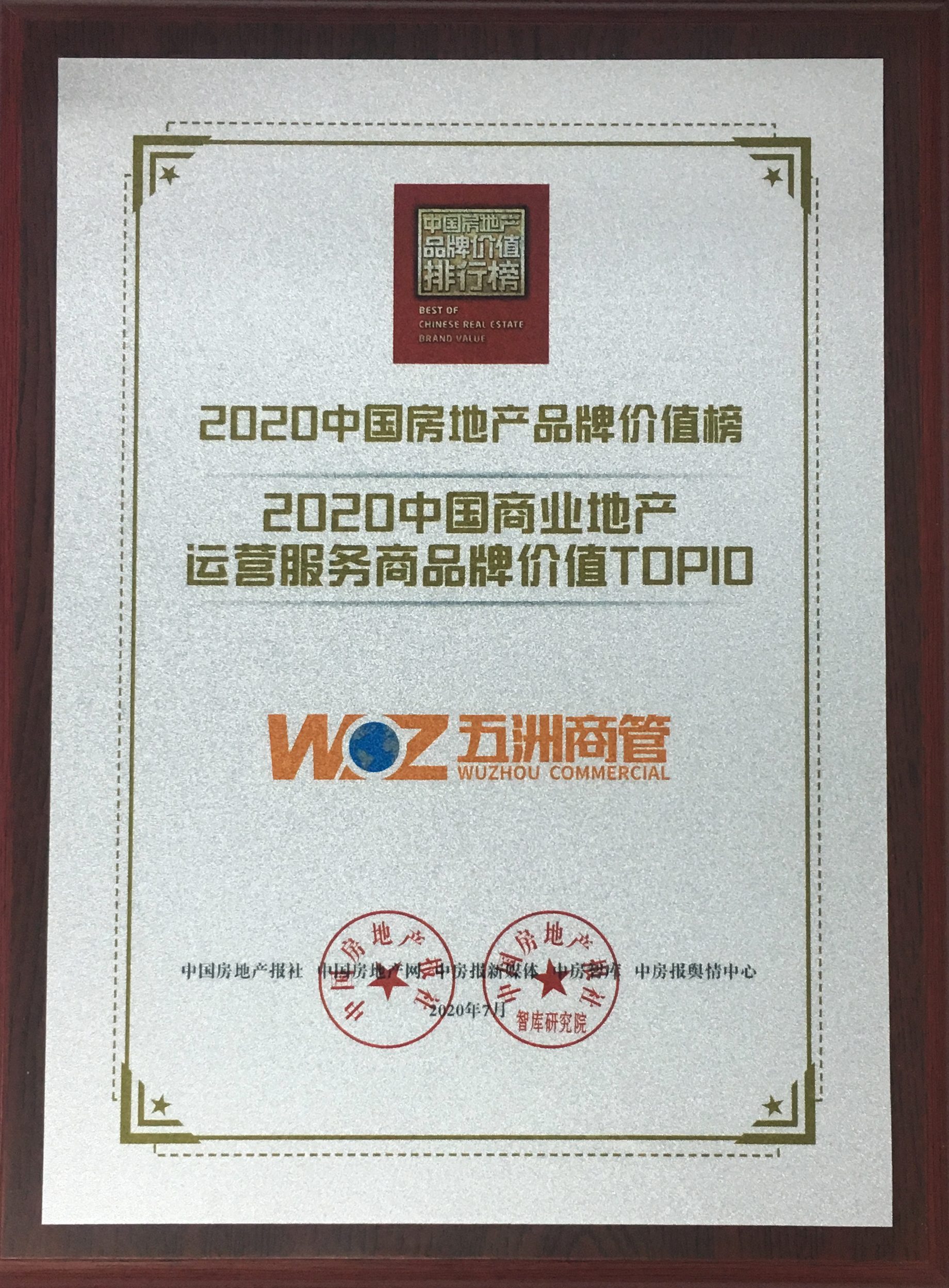 - 2020中国商业地产运营服务商品牌价值TOP10