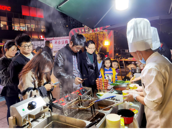 很多市民在网红小吃摊排队等着,纷纷表示闻着味儿就过来了。