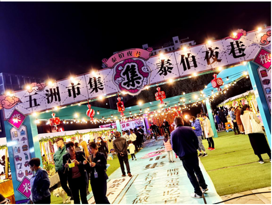 2020年11月,五洲商管梅村项目网红打卡文创周末夜市“泰伯夜巷 五洲市集”再次开启。泰伯夜巷的出现填补了梅村当地夜经济空缺的现状,为梅村当地市民带去更多的夜间休闲逛街选择。