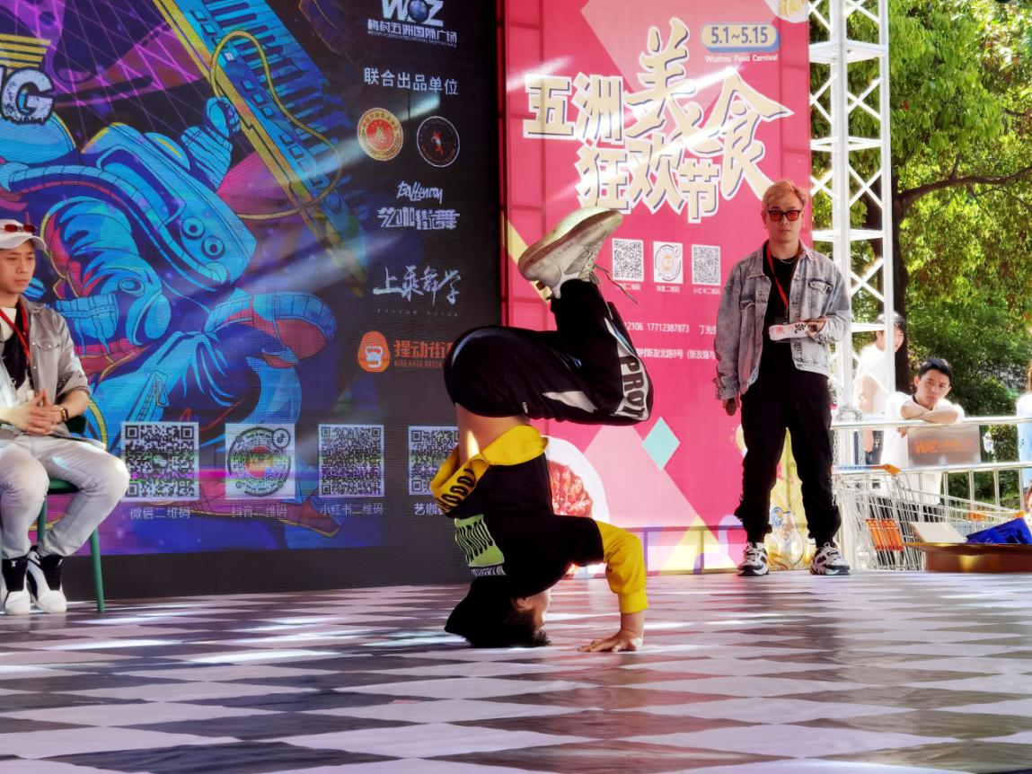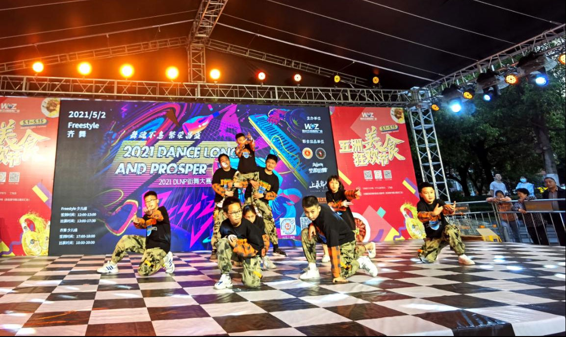 五月二日下午,无锡梅村五洲国际广场人头攒动,舞台前方一片欢呼声口哨声,舞台上的音乐节奏鲜明,一个又一个小小身影在舞台上展现各种舞蹈技巧应对着对手,原来现场正在进行的是梅村五洲国际广场2021第二届DLNP少儿街舞大赛。